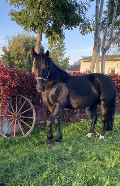 I am looking to rehome my 17-year-old gelding. Breed: Wielkopolska Height: 170 cm Weight: 750 kg (according to horse scale in September 2024) He is regularly vaccinated (tetanus, West Nile, influenza), dewormed, and has had dental and physiotherapy/osteopathy checks. I bought him when he was 4 years old, so it is difficult for me to let him go. Unfortunately, I can no longer provide him with what he needs. He is a former school horse. Always reliable, he is well-suited for beginners (under supervision) and advanced riders, both in the arena and on trails. He is experienced in courses, both on the property and off. He has passed the calmness test and has carried me through my riding badge. He is ridden in a Western saddle and is familiar with Equikinetic and lunge work, as well as double lunge work (which hasn't been done for a while). However, he is not suitable for complete beginners. He needs a confident handler; otherwise, he can be a bit cheeky. Unfortunately, he has arthritis in his front toe joints (X-rays from 2024 available). Therefore, he is currently shod in front with pads. I haven't tried him without shoes. He has also lost his incisors in the upper jaw due to EOTRH, but he manages well. He even eats from larger mesh hay nets at my place. I think he struggles a bit with very short grass, as he has to tear it off to eat. However, due to the arthritis, care should be taken to ensure he does not become overweight. He has been a mild headshaker in the summer. I give him tryptophan and a mask with nostril protection during the summer, and that has worked well. I have always managed it this way, so I don't know how he would do without it. He is familiar with both open stabling and paddock boxes. He ranks second in the herd but will lead the older horses when the herd leader is absent. I would prefer a family environment for him. Someone who can keep him active, whether from the ground or under saddle. Someone who understands if he has a bad day due to arthritis. He can also stay here at the stable. The horse is privately owned and will only be sold to a private individual. I charge €40 for trial rides, which will be deducted from the purchase price. The price is negotiable. What matters most to me is that he goes to a good home.
