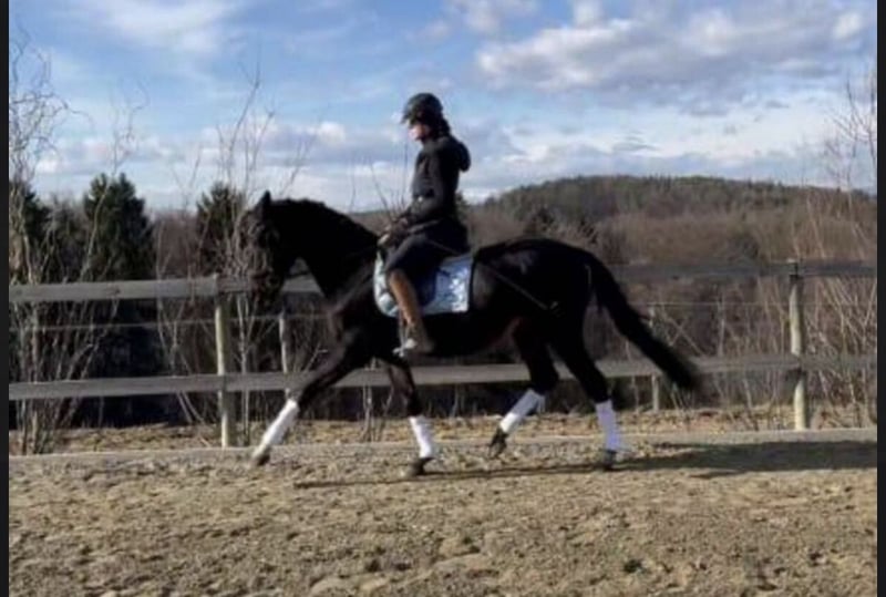 This lovely gelding is looking for his forever home. An absolute reliable horse, he has been ridden by small children, enjoys jumping, and loves leisurely trail rides. However, due to his good basic gaits, he also shows talent for dressage - he is nice to ride.
