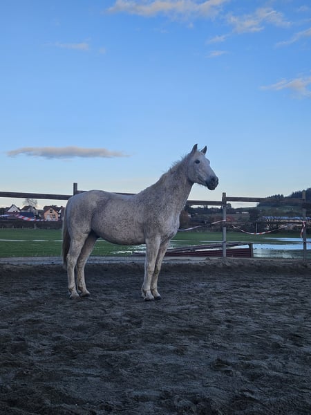 Polnisches Warmblut Mix – Wallach, 2006 1,61 m – sucht erfahrenen Menschen Zum Verkauf steht unser polnisches Warmblut-Mix Wallach, geboren 2016, mit einem Stockmaß von ca. 1,61 m. Er ist ein charakterstarker, dominanter Wallach, der einen Menschen sucht, dem er vertrauen kann und der ihm klare Führung gibt. Bei konsequenter und fairer Führung zeigt er sich stets brav und kooperativ. Er ist niemals böse, jedoch kein Pferd für Anfänger oder Kinder und auch nicht für den Schulbetrieb geeignet. Sein Reiter sollte Erfahrung mitbringen und sich durchsetzen können. Unter dem Sattel läuft er brav und lässt sich gut arbeiten. Laut Vorbesitzern wurde er bis zur E-Dressur ausgebildet, wir selbst haben das jedoch nicht weiter verfolgt. Kleine Sprünge macht er ebenfalls gerne, aber rein just for fun Im Umgang ist er schmiede- und verladefromm. Alle Impfungen sowie tierärztlichen Untersuchungen wurden stets regelmäßig und sorgfältig durchgeführt. Er läuft barhuf und kennt Offenstallhaltung, welche für ihn auch die beste Haltungsform ist. Zubehör: Er wird mit umfangreichem Zubehör abgegeben (3 Halfter, Stricke, Putzsachen, Futter usw.). Der Sattel kann gegen einen kleinen Aufpreis ebenfalls erworben werden. Probereiten: Ein Probereiten ist nach Absprache möglich. Wir erheben dafür eine Pauschale von 30 €, die beim Kauf selbstverständlich zurückerstattet wird. Wichtig: Schulbetriebsanfragen, Anfängeranfragen sowie „Was ist letzte Preis?“-Nachrichten werden nicht beantwortet. Wir geben ihn nur schweren Herzens ab, aber zum Wohle des Tieres muss man manchmal realistisch entscheiden. Mensch und Pferd müssen einfach zusammenpassen. Bei ernsthaftem Interesse und weiteren Fragen freuen wir uns über eine Nachricht. E-Mail: Jenny270312km@gmail.com