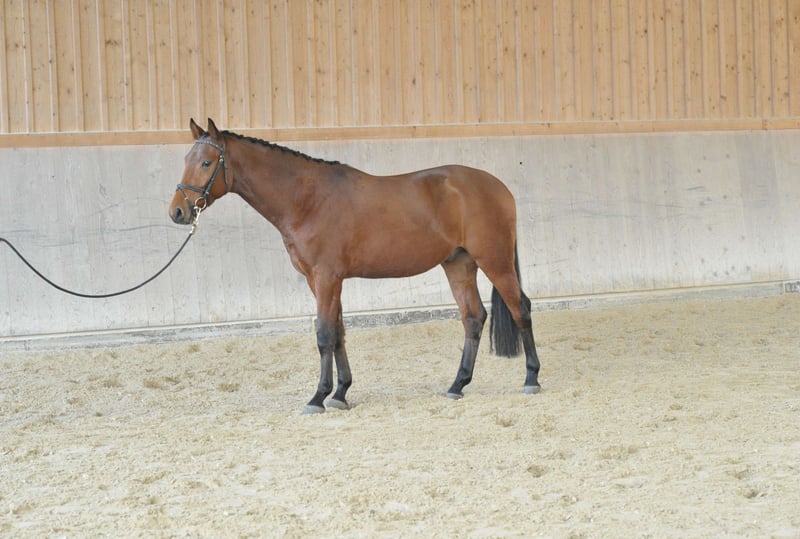 Auffälliger schicker Flemming Sohn-Nachkomme in begehrter brauner Jacke mit 3 sehr guten GGA und Talent und Vermögen am Sprung und ehrlichem Charakter. Eine besondere Empfehlung für den Nachwuchs Turnierreiter.