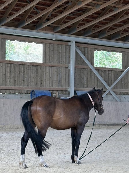 Du möchtest dir dein Traumpferd selbst ausbilden? Dann bist du hier genau richtig ✨ Zum Verkauf steht ein 4 jähriger Wallach, Stockmaß ca 1,50m, Mutter: deutsches Reitpony Vater: Warmblut Mix Zuletzt im Juli entwurmt, Tetanus geimpft, Herpes Grundimmunisierung erfolgt 2x, kleine AKU im Juli 25. Derzeit steht er in einer kleinen Herde mit Aktiv Stall und täglichem Koppelgang. Da ich aus beruflichen Gründen leider nicht die Möglichkeit habe ihn selbst auszubilden, doch so viel Potential in ihm steckt und er sehr schnell lernt, braucht er unbedingt bald einen erfahrenen Reiter, oder professionellen Betritt. Vielfältiges Equipment kann zusätzlich dazu erworben werden. Bei ernst gemeintem Interesse meldet euch gerne, dann können wir gerne telefonieren. Es ist kein Notverkauf!