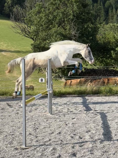 3j pinto mix wallach wegen zeitmangel zu verkaufen! hatt momentan ca ein stkm 156cm kennt bodenarbeit freispringen freiarbeit reitergewicht hufschmied und ist verladefrom. er ist ein motivierter neugieriges pferd das gefallen und arbeiten will. Aktuell in einen offenstall/robust haltung kennt aber auch box. preis is inkl zubehör VHB