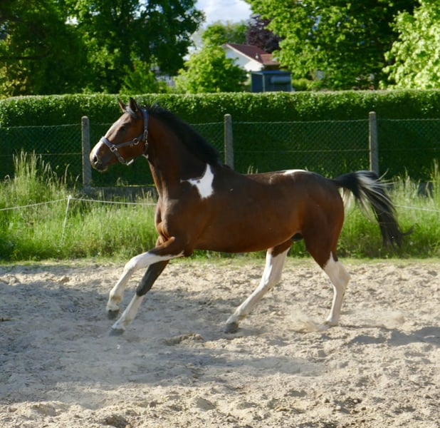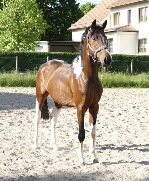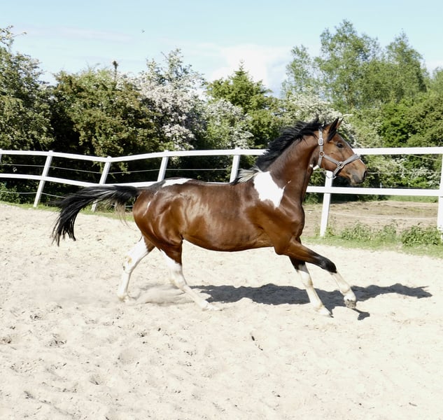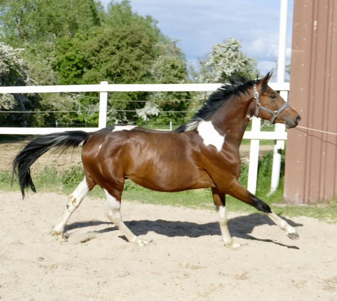 Imperio A , 4j. Wallach von Insider x Chaman , ein Traum in bunt! Bewegungspotential vom feinsten, abstammungsgemäß hochinteressant für Vielseitigkeit und Springsport