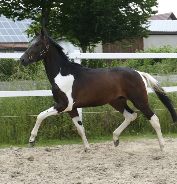 Insider's Glückspilz, un potro de 3 años, hijo de Insider y Cassone, impresiona por su calidad de movimiento y su carácter maravilloso. Es un caballo impresionante con una estatura final de aproximadamente 1,75 m. Su linaje es muy interesante para disciplinas de concurso completo y salto, lo que lo hace ideal para la doma y la competición en salto.
