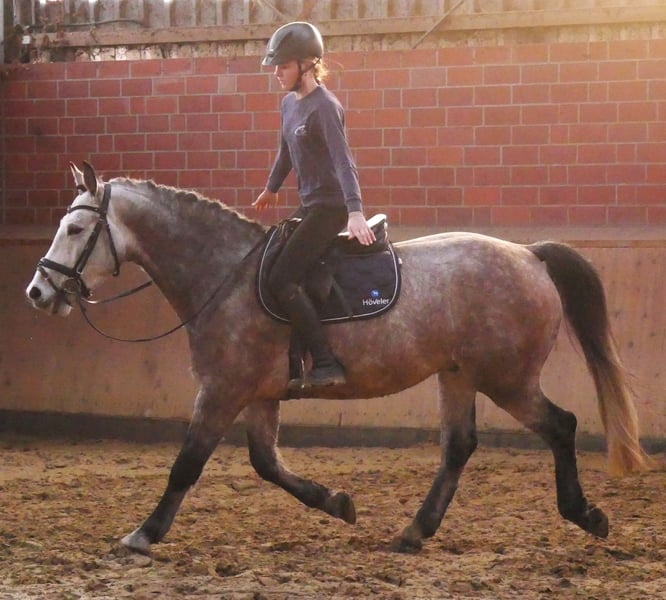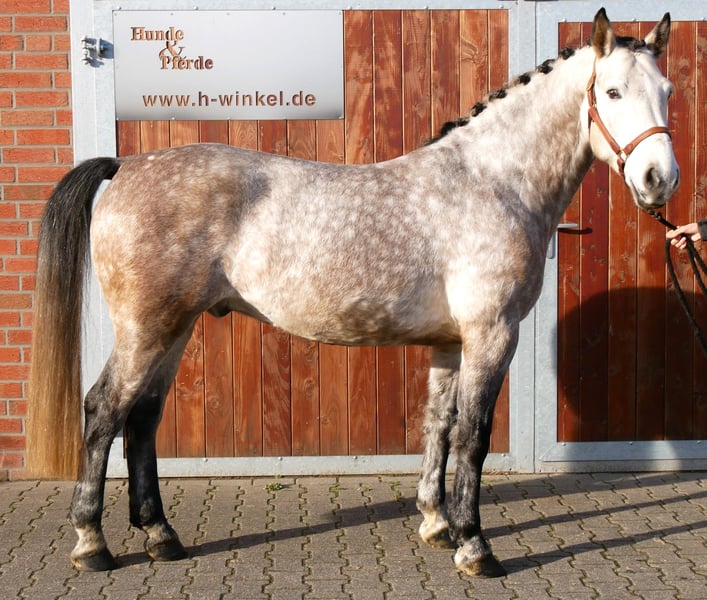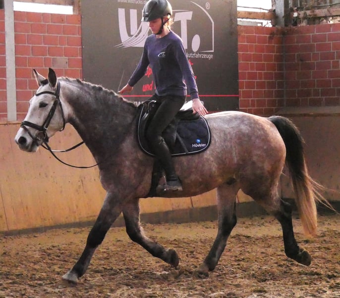 Change is a very well-behaved gelding of medium height. He is a true all-rounder, excelling in the indoor arena, on the outdoor riding surface, and confidently handling the terrain. He also jumps courses and could be used immediately in a riding school. Change is vaccinated, dewormed, and gets along very well with other horses. For more information, please contact us at 0176 62495567.