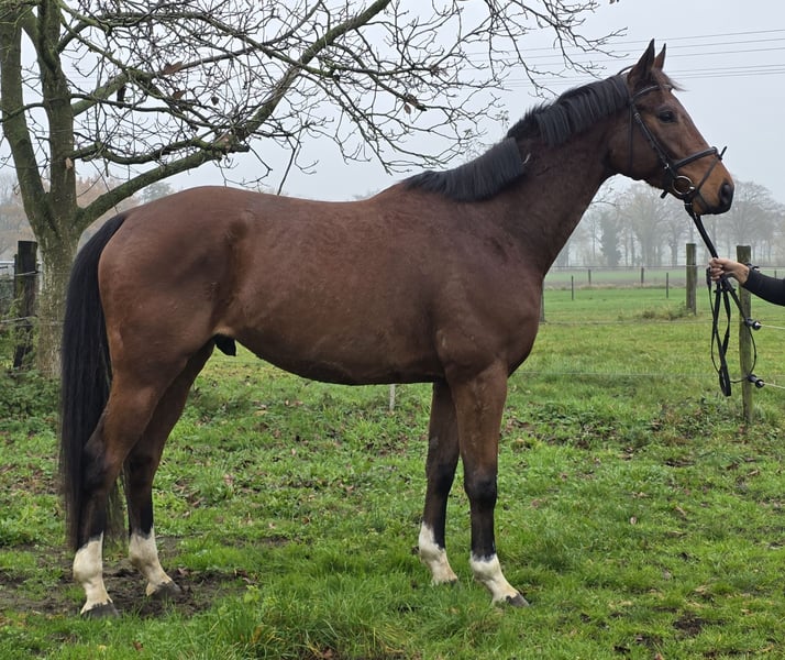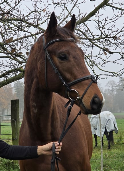 Rusty is an approximately 16.1 hh charming gelding, and he will likely still grow another 1-2 cm. He has good, solid conformation, and what truly stands out about him is his fine riding sensitivity. He is an automatic horse. :-) Rusty is a great all-rounder for all disciplines of riding. Just mount up and feel at ease. In handling, he is a spirited type, a true gelding. He is always alert and eager to play with everything, carrying around various objects. :-) Rusty can sometimes be quite the clown. Otherwise, he is a robust little fellow who is accustomed to open stalls, 24-hour turnout, and box stall management with pasture time. Rusty has a current veterinary examination with no findings. For more information, please call: 0177/2721831. If you are interested in videos, kindly contact us exclusively via WhatsApp.