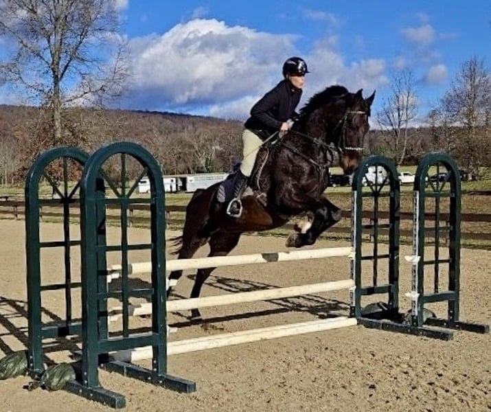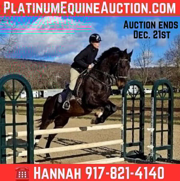 ONLINE AUCTION Place your bids at www.PlatinumEquineAuction.com Starting Bid $3500 Auction ends December 21st, 2025 Need a new saddle? Check out White Rock Saddles on our website or Facebook WAF Black Tie Affair is an exceptional young gelding looking for his next partner. Incredibly lovable and talented, this 5 year old stands 16.2hh, is registered Dutch Harness Horse, and is also eligible for the KPWN registry. Black Tie has been shining in show jumping and eventing, competing around the northeast and placing in every ring he enters. Currently jumping one meter in jumpers and beginner novice in eventers. Black Tie showcases fantastic reflexes, amazing scope, appropriate caution, and a fighting spirit. He approaches every situation with great awareness and a strong work ethic. Always the crowd favorite, Black Tie demonstrates a remarkable willingness to please and perform. He loads, trailers, ties, bathes, clips, lunges, and is good for the farrier and vet. Doesn’t paw or kick in the trailer and will wait patiently for his class for hours, even if alone. Travels well and stalls quietly overnight away from home. Along with excelling at show jumping and cross country Black Tie is excellent on the trail. Not spooky, he crosses bridges, logs, water, and isn’t scared of dogs, cars, or bikes. Rides out alone and in groups. Sired by leading DHH stallion Hightanium, this gelding has the pedigree and talent to go any direction. Ideal for an ambitious amateur seeking a young horse with prospects in various disciplines. Located in Lebanon, NJ. For more info call Hannah Zorn 917-821-4140 with any questions. ONLINE AUCTION Place your bids at www.PlatinumEquineAuction.com Starting Bid $3500 Auction ends December 21st, 2025 Need a new saddle? Check out White Rock Saddles on our website or Facebook