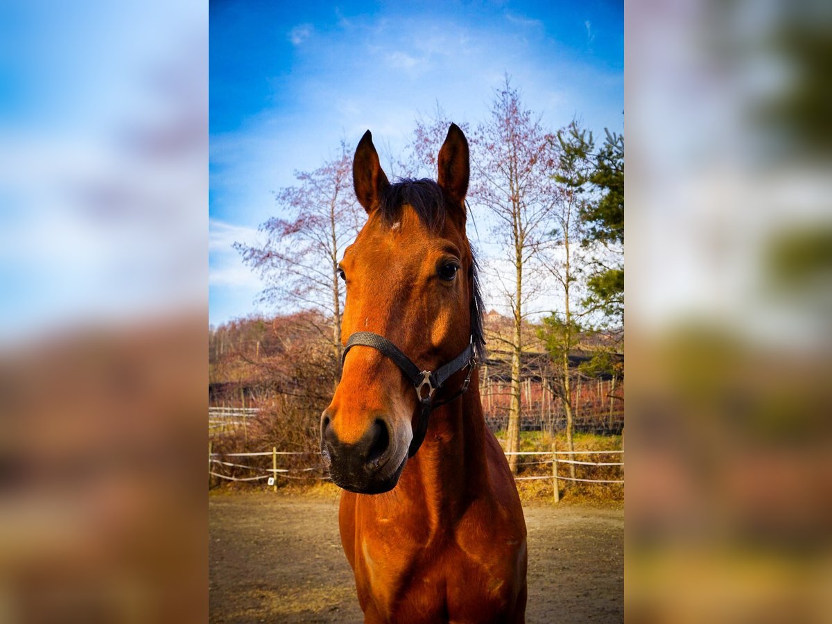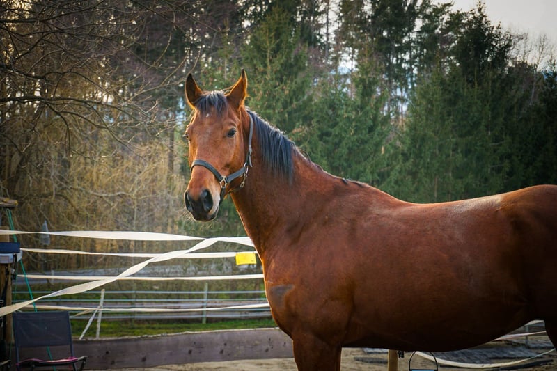 Dream horse with a very sweet character and competition potential is looking for his person. Important data at a glance: - Name: Eleven - Age: 5 years - Gender: Gelding - Character: playful, curious, open-hearted for his age - Training: solid basic training, not fully trained yet due to his age, moderate trail experience available Eleven is a horse with very good lineage, especially regarding his jumping ability; he has already been trained over small jumps. Unfortunately, due to a lack of time, he is currently not in full training. He is familiar with the riding arena, lungeing, veterinarian, farrier, trailer loading, and is accustomed to dogs, cats, and children, behaving very well in all of these situations. However, we do not recommend him as a beginner or children's horse, as he would require further training and stability for this. Eleven is currently kept with a gelding; he is accustomed to both pasture and box housing and displays a medium rank. He has also been regularly dewormed, and vaccinations have not yet been performed. He was presented to the dentist about a month ago and is currently shod on all four hooves. Note: To avoid riding tourism, a fee of EUR 35,- will be charged for a trial ride, which will of course be refunded upon purchase. If you are seriously interested, we look forward to receiving a message or a call.