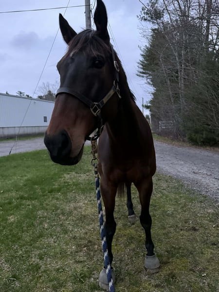 "AVAILABLE ON ONLINE HORSE AUCTION AT www DOT PlatinumEquineAuction DOT com BIDDING OPEN NOW thru SUNDAY | MAY 10TH! *Final price will be determined on auction site* CONSIGNOR CONTACT INFO: Kayla Whittier 401-835-5354 LOCATION: Plympton, MA 17.2h | 6-Year-Old | Warmblood Cross Gelding Shown in the hunter ring with success, but truly built for the jumper ring — this talented gelding is ready to take you up the levels. Highlights: • Successfully shown in hunters — brings valuable mileage and ring confidence • Naturally suited for jumpers with scope, stride, and athleticism • Currently jumping 3’3” with ease • Big, ground-covering stride and forward rhythm for jumper tracks • Careful over fences with a ton of scope Temperament & Manners: • Super sweet, kind personality — easy to have in the barn • Stands quietly for tacking, mounting, and grooming • Excellent ground manners — respectful and easy to handle Easy to Work With: • Loads and trailers well — ships quietly • Stands tied patiently • Great for the farrier — no fuss • Good for vet — straightforward and cooperative • No known vices This gelding offers the best of both worlds — hunter experience with jumper talent. A fantastic opportunity for someone looking for a competitive partner with a solid foundation and a bright future.