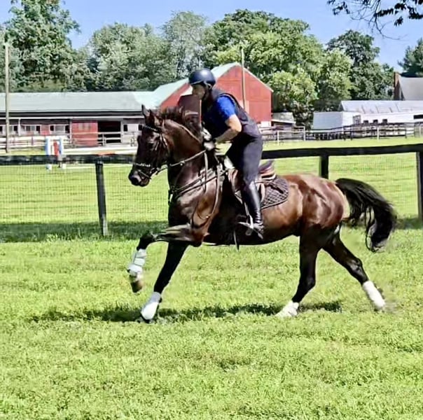 VERFÜGBAR AUF DEM ONLINE-PFERDE-AUKTION bei www.MagicHorseAuction.com GEBOTE sind jetzt offen bis Dienstag, 28. Oktober! – KAUF-OPTION “Jetzt kaufen” verfügbar! *Der endgültige Preis wird auf der Auktionsseite festgelegt* VERKÄUFER-KONTAKT: Katherine Cox, 917-821-4140 STANDORT: Lebanon, NJ „WAF Black Tie Affair ist ein außergewöhnlicher junger Wallach, der nach seinem nächsten Partner sucht. Unglaublich liebenswert und talentiert, ist dieser 5-Jährige 1,66 m groß, im DHH-Register eingetragen und außerdem für das KPWN-Register berechtigt. Black Tie hat sich in Springen und Vielseitigkeit hervorgetan, war in der Nordostregion unterwegs und hat in jedem Wettkampfring, in dem er antrat, Platzierungen erreicht. Derzeit springt er im Springreiter-Wettbewerb über einen Meter und startet im Anfänger-Versuchsbereich der Vielseitigkeit. Black Tie zeigt hervorragende Reflexe, beeindruckenden Umfang, angemessene Vorsicht und einen kämpferischen Geist. Er geht jede Situation mit großem Bewusstsein und starker Arbeitsmoral an. Immer der Publikumsliebling, zeigt Black Tie eine bemerkenswerte Bereitschaft, zu gefallen und zu performen. Er lädt sich problemlos in den Anhänger, wird angebunden, gebadet, geklippt, longiert, ist beim Hufschmied und Tierarzt zuverlässig. Er gräbt nicht und tritt nicht in den Anhänger, wartet geduldig auf seine Runde, auch wenn er alleine ist. Er reist gut und bleibt nachts ruhig im Stall, auch fern vom Heimatstall. Neben seinen Erfolgen im Springen und der Vielseitigkeit ist Black Tie auch auf dem Trail sehr gut unterwegs. Nicht schreckhaft, überquert er Brücken, Baumstämme, Wasser und hat keine Angst vor Hunden, Autos oder Fahrrädern. Er reitet alleine sowie in der Gruppe. Sein Vater ist der führende DHH-Hengst Hightanium, was diesem Wallach die Abstammung und das Talent verleiht, in jede Richtung zu gehen. Ideal für einen ambitionierten Amateur, der nach einem jungen Pferd mit Perspektiven in verschiedenen Disziplinen sucht.“