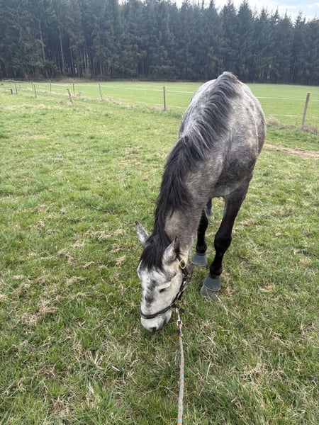 With a heavy heart, I am looking for a new home for my 7-year-old gelding (height 153 cm) as a companion horse with the option for trail riding. He is not a beginner's horse and needs an experienced person. ✨ Here’s what you should know: • Regularly vaccinated and up to date with the farrier • Needs open stable/pasture due to cribbing NO box stall housing • Currently in a mixed herd and gets along well • Easy to handle, but not a typical "cuddle horse" type ➡️ A good home is more important than the price! It is very important to me that he goes to good and responsible hands – and can stay there. Location: Leienkaul If you are seriously interested, I would appreciate a message with information about his new home and a brief introduction :))