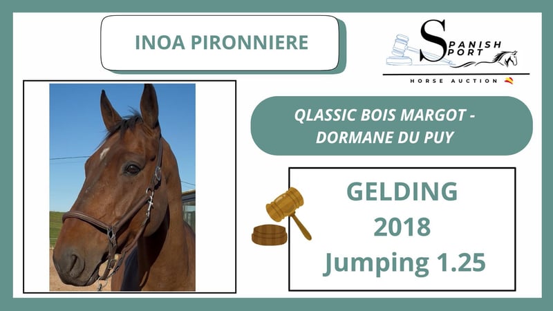 SPANISH SPORT HORSE AUCTIO From 20 to 22 November ! sshorseauction.com Caballo tardió con mucho potencial. Actualmente clasificado en pruebas de 1.25 ! Un caballo con mucha proyección, facil de montar en el día a día y con muy buen caracter. Su padre "QLASSIC BOIS MARGOT" es un semental consolidado, con más de 6 hijos comptitiendo en pruebas de 1.60 y 24 hijos aprovados !