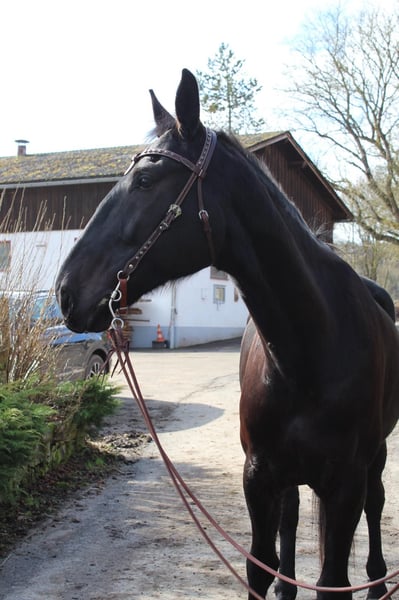 We would like to offer our impressive Nonius gelding, born in 2019. Our elegant black pearl impresses not only with his height of 17.5 hands but also with his promising movement and friendly nature. With his attentive and eager-to-learn character, as well as his sensitivity, he is the ideal partner for experienced riders who appreciate quality and willingness to work. His typical appearance and gentle temperament make him a wonderful companion. Our gelding has a solid foundation in Western riding and shows great potential for further training in dressage. He is suitable for experienced riders who are ready to develop his talent further. Please note that a veterinary report documents early signs of arthritis (X-ray images from 2025, incidental finding). However, no lameness is present, and he is kept both in a paddock and in a stable. If you have any questions or need further information, we are happy to assist you at any time. We wish our "little" friend a loving new home! This is not a distressed sale! We simply want to give him the opportunity to continue developing in his discipline, as we are pursuing different goals in the Western riding area.