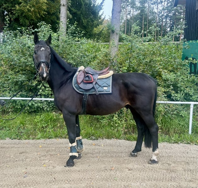 Emre is a beautiful black gelding born in 2017. The approximately 169 cm tall Nonius is a true insurance for life. The gelding is completely unflappable and calm. At the grooming area, Emre stands relaxed and enjoys the closeness to his rider. Under saddle, the black horse shows the same calm and relaxed demeanor. Emre is very easy to ride and provides a super secure feeling. Therefore, this horse is also ideally suited for cautious or anxious riders, as well as beginners or re-riders. Emre is in top shape, vaccinated, and dewormed. Current X-rays underline the very good health condition of the horse! For more information and videos, feel free to contact via WhatsApp or by phone at: 00436603632373 Location: Pelmberg 15/OÖ Viewing and test riding are welcome by appointment! Transportation of the horse can be arranged.