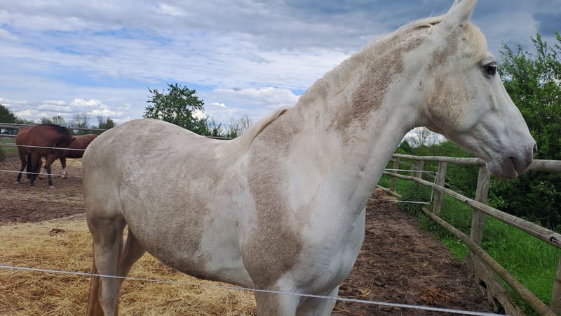 Farco, a cheerful Spanish-mix gelding! Born in 2016. Farco has osteoarthritis in the right hock, so he might be suitable for light riding, such as walking, but only with an extremely gentle rider. If it hurts him, he will run away. He is explicitly offered as a companion horse and can enjoy his life with his herd mates. He has been compatible with all horses so far and is not a dominant leader. He is familiar with groundwork, horsemanship, and is very sweet and friendly. However, he is also very skittish – the wind worries him. We have managed his nervousness well through desensitization exercises. He is alert and curious in his mind. He also goes for walks in the forest with me. Unfortunately, I cannot provide him with the security he needs (before we knew about his osteoarthritis, he bucked me off four times in canter). I love him dearly, but I am no longer able to meet his needs. For health reasons, I cannot care for him properly anymore. Additionally, the mare he was kept with has recently passed away, which has taken away the security she provided. Our current paddock is very windy, which causes him even more stress. We are looking for a pasture-based stable environment. Space is more important than price!