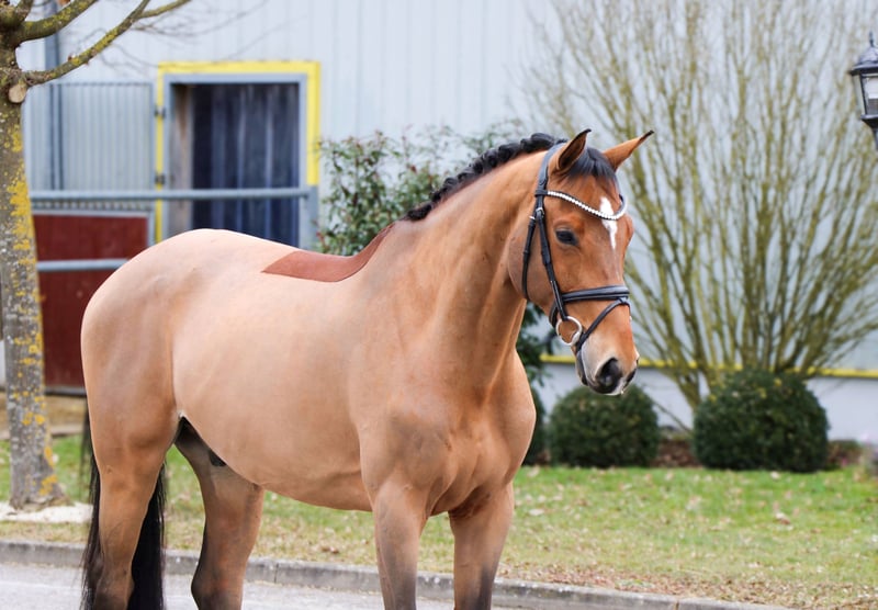The 9-year-old gelding "Rico" is a very calm and unflappable horse. He is in his prime and has received a solid, versatile basic education. The gelding is familiar with leading in hand, sand paddocks, and turnout, both alone and in a group. Under saddle, he impresses with his relaxed and especially calm demeanor. He moves nicely on the bit and is not overly spirited, which allows him to handle less experienced riders and hesitant aids very well. He can also be ridden with draw reins. Rico knows lunging work and is completely uncomplicated and brave in that regard – we can also imagine him as a good Voltige horse! Jumping and cavaletti work are no problem for him; he enjoys it and remains motivated and focused. He also performs both flying and simple changes. Another highly valuable bonus is his reliability in the terrain. Whether alone or in a group, he leaves the yard obediently and always shows himself to be trustworthy in the field. The gelding is absolutely traffic-safe, and there is nothing standing in the way of a relaxed and calm hack. (See video) **IMPORTANT: WATCH THE ENTIRE VIDEO, INCLUDING TRAIL RIDING AND JUMPING.** • The height information is estimated and not precisely measured. • All descriptions are subjective assessments by the seller and are not guaranteed characteristics. Current X-rays show no findings, and a clean veterinary certificate is available. Interested? Please contact us by phone at 015140555583. You can also reach us on weekends or public holidays.