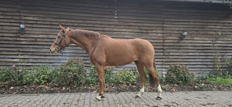 Cassy is a 10-year-old chestnut mare standing at 16.1 hh. Unfortunately, her pedigree is unknown. In recent years, she has been ridden primarily for leisure. However, it became apparent that the mare requires consistent work with a rider who can handle harmless testing behaviors. In the field, she has some go but remains manageable. Since a few weeks, she has been in professional training, and groundwork and jumping have been introduced. She shows a lot of enthusiasm and talent for these activities. Cassy is barefoot and in excellent health. There is no current veterinary certificate available. She has not yet been registered for competition. Location: 32425 Minden Videos available upon request via WhatsApp at 017670349915