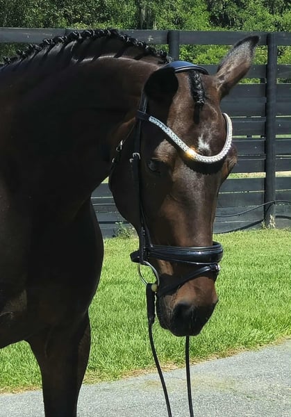 ONLINE AUCTION Place your bids at www.PlatinumEquineAuction.com Starting Bid $3500 Auction ends June 8th, 2025 Need a new saddle? Check out White Rock Saddles on our website or Facebook! Kylee is a 2015 16.2h KWPN registered Dutch Warmblood mare. Her impressive bloodlines include the famous stallions Fiderbach, Ferro, and Donnerhall. Kylee has several years of professional dressage training. She schools 2nd level and has the talent to continue moving up the levels. She has the best lateral work and her trot is smooth and easy to sit. She could be a fun prospect for eventing or hunting. Kylee used to pasture board at a fox hunting estate and is accustomed to the hounds, hunting horns, etc. She is an easy keeper and has always been barefoot with no maintenance. Rides in a gentle snaffle. Kylee is easy to catch, cross tie, groom, tack up, and bathe. She even tries to put the bridle on herself. She loads up nicely and is quiet to haul. Kylee turns out with a gelding and shares a fenceline with a mini horse, donkey, and broodmares. If you have been dreaming of a gorgeous Warmblood to ride or breed, do not miss out on the opportunity to acquire this stunning Dutch Warmblood! She is located in Ocala, Florida with shipping available. If you have any questions please call Rachel with Show Me Sport Horses 352-467-5695. ONLINE AUCTION Place your bids at www.PlatinumEquineAuction.com Starting Bid $3500 Auction ends June 8th, 2025 Need a new saddle? Check out White Rock Saddles on our website or Facebook!