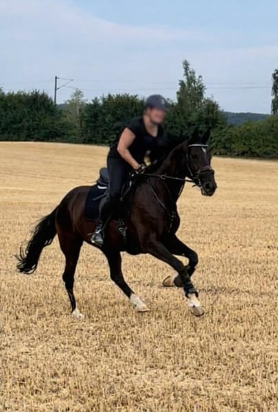 We are offering a beautiful warmblood mare – perfect for leisure riding! This dark-coated mare was born in 2015 and impresses with her friendly nature and versatility. She is ideally suited for recreational riding and consistently demonstrates reliability and a pleasant demeanor both in handling and under saddle. Whether for dressage, small jumps, or enjoyable leisure rides, this mare is the perfect companion for anyone who loves spending time in the saddle. If you are interested or have any further questions, please do not hesitate to contact us.