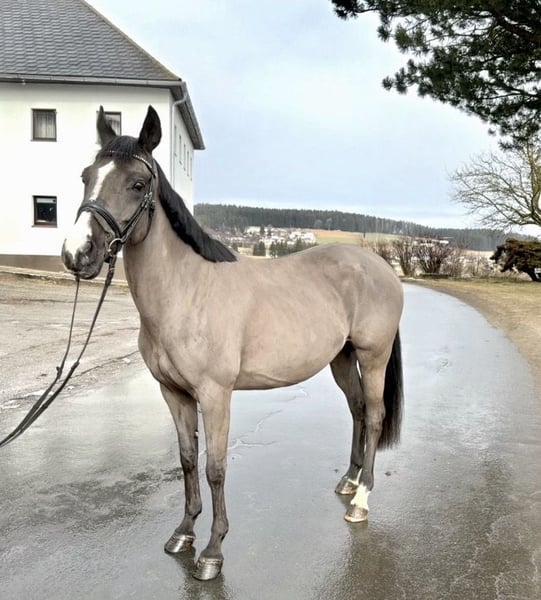 Mary is a ten-year-old black mare (currently clipped) with a very distinctive presence. Standing approximately 157 cm tall, this mare impresses with her good basic gaits, her straightforward temperament, and her impeccable character. Mary is a horse for relaxed riding and fun. Whether in the riding arena or out on the trail, she is always attentive and eager to please. She also handles small jumps flawlessly. Further information and videos are available via WhatsApp or by phone at: +43 660 3632373 Location: Pelmberg 15 / Upper Austria Viewing and trial riding are gladly arranged by appointment! Transportation of the horse can also be organized upon request.