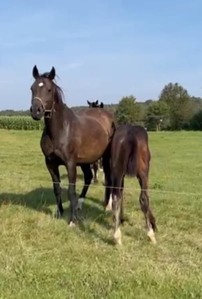Verkaufen aufgrund von Bestandsreduzierung braune, 14 jährige, erfahrene Zuchtstute von Diarado. Die Stute ist für Mai tragend vom ehemaligen Bundeschampion Arezzo Man( Titelbild, Quelle Gestüt Birkhof). Aufgrund einer älteren Geburtsrehe benötigt die Stute ein intelligentes Weidemanagement.