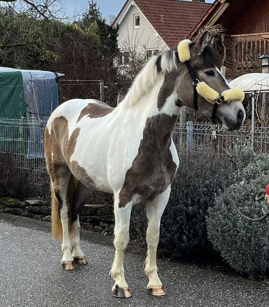 Maja , sehr schöne im modernen Typ stehende Falbenscheck Stute. Bisher wurde Maja dem Alter entsprechend schonend angeritten und macht ihren Job dabei ausgezeichnet, lernt schnell und hat Spaß bei der Arbeit. Lässt sich überall anfassen und putzen , kennt Hufschmied und ist verladefromm. Durch ihr schönes Fundament und den schönen GGA ausgestattet, ist sie für viele Sparten der Reiterei geeignet und deckt viele Reiter damit super ab. Kennt Offenstall und Herdenhaltung, ist mit landwirtschaftlichen Tieren und Geräten vertraut. Auf Wunsch mit AKU von anerkannter Pferdefachklinik !