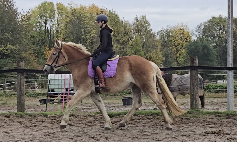 Maak gerust een afspraak via: +49 155 61855942 Ook graag via WhatsApp. Locatie: 45472 Mülheim Leo is een 4-jarige, sportieve koudbloed merrie met een schofthoogte van ongeveer 1,62 m. Ze is onder het zadel zeer braaf en eerder getraind in haar temperament dan te snel. Momenteel wordt ze bij ons 3-4 keer per week veelzijdig gereden. Ze ontwikkelt steeds meer uithoudingsvermogen, waardoor ze goed door kan rijden tijdens het rijden. Momenteel rijden we maximaal 20 tot 30 minuten. Ze is zeer leergierig, wil altijd graag gefallen en probeert alles correct uit te voeren. Ze reageert niet overdreven op het been of op de zweep en is niet schrikachtig. Leo is weinig omgevingsgericht en gewend om samen met meerdere paarden in de rijbak of op het terrein te worden gereden. Longeren doet ze tot nu toe ook uitstekend. In omgang is ze braaf, eerder verlegen en terughoudend. Maar voor een wortel doet ze alles. Leo zoekt haar gouden mandje waar ze geliefd en geknuffeld wordt. Ze is een geweldig en betrouwbaar recreatiepaard. Tot nu toe is ze gezond, ontwormd, haar gebit is recent verzorgd en ze is door de hoefsmid verzorgd, wat ze uitstekend doet. Actuele video's zijn beschikbaar en kunnen na eerste contact worden opgestuurd. Een keuring (AKU) kan op verzoek van de koper worden geregeld. Om de paardentourisme te beperken, rekenen wij €30 voor de presentatie en keuring van het paard. Natuurlijk komen ook de paarden zelf hiermee ten goede, bijvoorbeeld via osteopathie, dierenartsen, chiropractie, massages, solarium, muesli, wortels en dergelijke.
