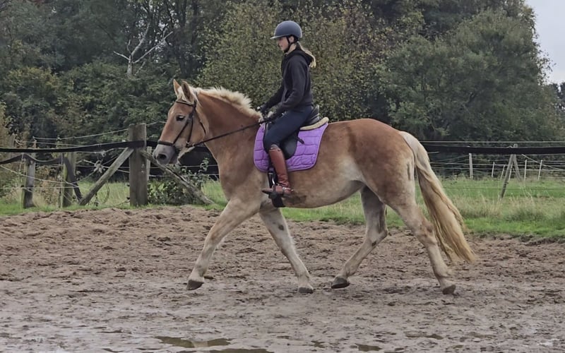 Bitte vereinbaren Sie einen Termin unter : +4915561855942 . Gerne auch per WhatsApp. Standort 45472 Mülheim Leo ist eine 4 j. Aktuell 1.62 cm große sportliche Kaltblut stute. Sie ist unterm Sattel absolut brav und eher triebig als zu flott. Aktuell wird sie bei uns 3-4 x die Woche vielseitig gearbeitet. Sie entwickelt aktuell immer mehr Konditionen sodass sie beim reiten gut durchhält. Aktuell sind wir bei 20-maximal 30 Minuten. Sie ist super gelehrig und möchte immer gefallen und versucht alles richtig zu machen. Sie ist nicht zuckig am Bein oder reagiert sonderlich über auf die Gerte. Sie ist wenig umweltorientiert und kennt es auch mit mehreren in der Halle oder auf dem Platz geritten zu werden. Longieren macht sie auch bisher super. Im Umgang ist sie brav, eher schüchtern und zurückhaltend. Aber für ein Möhrchen macht sie alles. Leo sucht ihr Herzenszuhause wo sie geliebt und gekuschelt wird. Sie ist ein tolles und solides Freizeitpferd. Bisher ist sie gesund gewesen, entwurmt, Zähne frisch gemacht und beim Schmied war er auch und macht das hervorragend. Aktuelle videos sind vorhanden und können nach dem erstkontakt gerne versendet werden. Eine AKU kann im Auftrag des Käufers veranlasst werden. Um den Pferdetourismus zu bremsen, berechnen wir für die Präsentation und Prüfung des Pferdes 30 €. Davon profitieren natürlich auch die Pferde in Form von Osteopathie, Tierärtze, Chiropraktikern, Massagen, Solarium, Müsli, Karotten und so weiter