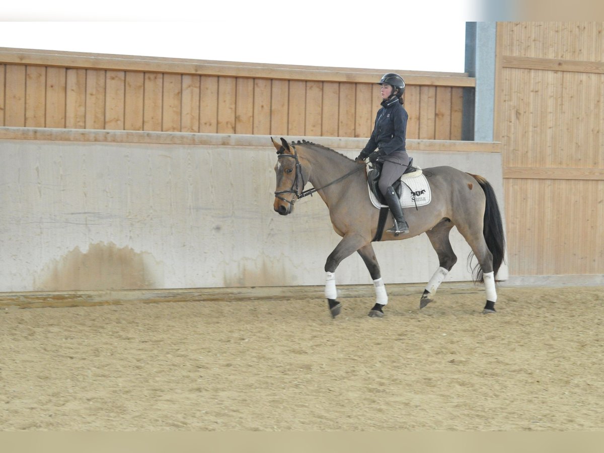 Kompakte, sehr sympathische braune Stute mit bester Allrounderqualität. Schon allein durch ihre liebenswerte und unkomplizierte Art, kann sie durch ihr Wesen punkten. Erst seit kurzem unter dem Sattel zeigt sie sich trotzdem ausgeglichen und nervenstark. Ihre Allrounder- und Reitqualitäten lassen ebenfalls keine Wünschen offen.