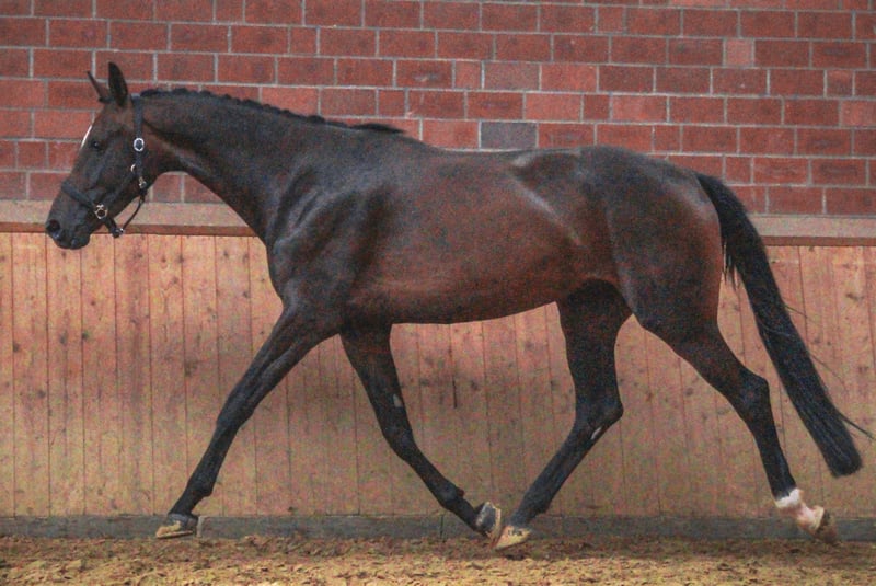 Naam: Frieda Leeftijd: geboren 2021 Geslacht: Merrie Schofthoogte: 168 cm Ras: Rijnlands Rijpaard Afstamming: For Gold x Stoiber SN van Sandro Hit Opleidingsniveau: Bereden Sportieve, elegante merrie met een goede basisopleiding en elastische gangen. Frieda is bovendien zeer braaf en licht te rijden en heeft een top karakter. Ze heeft rechtsvoor een bokhoef. De keuring van mei 25 met röntgenfoto's is verder zonder bevindingen. Voor meer informatie kunt u bellen naar 0176 62495567.