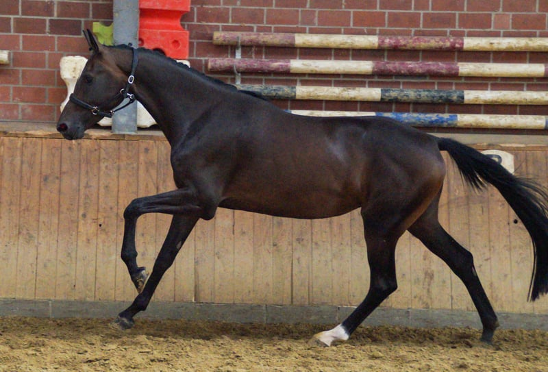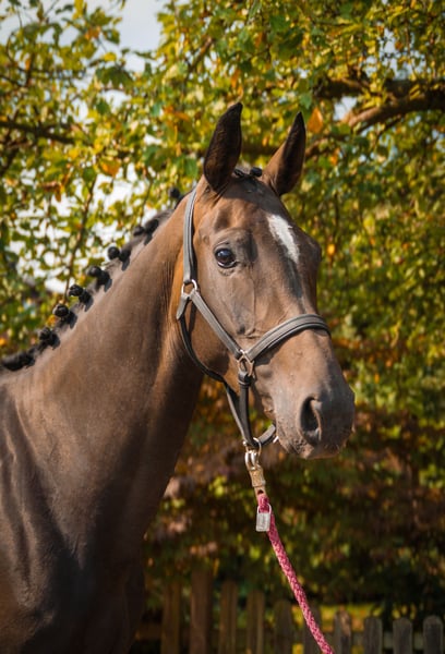 Name: Frieda Age: born 2021 Gender: Mare Height: 168 cm Breed: Rhineland Riding Horse Pedigree: For Gold x Stoiber SN by Sandro Hit Training level: ridden Athletic, elegant mare with a good basic training and elastic gaits. Frieda is also very well-behaved and easy to ride, and she has a top character. She has a hoof deformity on her front right hoof. The veterinary examination from May 25, with X-rays, is otherwise without findings. For more information, call 0176 62495567.
