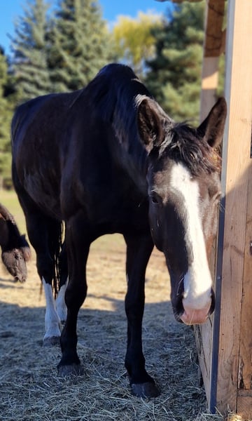 Piękna 5-letnia klacz rapp z wyrazistym ruchem we wszystkich trzech chodach. Całkowicie odważna i pewna siebie na terenie oraz w ruchu ulicznym. Zawsze pracowita i chętna do nauki zarówno podczas pracy w stajni, jak i na lonży. Towarzyska w stadzie, chętna do załadunku. Obecny wzrost to 171 cm.