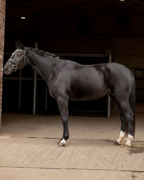 Exciting opportunity to acquire a super talented mare with a bright future. ‘Daphne’ is a top-class horse with three expressive, correct and balanced paces. She gives a fantastic feel under saddle and genuinely loves her work. She has a wonderfully trainable temperament, is bold, and a pleasure to have on the yard. ‘Daphne’ has been carefully and professionally produced with her long-term development in mind and is now ready to become someone’s next star. Sired by Danciero, the 2023 7-Year-Old World Champion, and out of an actively competing International Small Tour mare who is training Grand Prix -top level sport is in her blood! Great conformation as well as good X-rays available on request.
