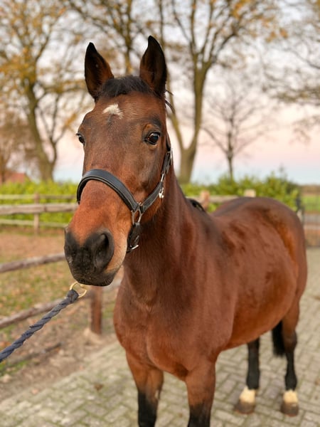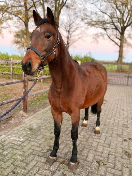 Quality Showjumping Ireland pony, 7 years old, measuring approximately 1.47 m, offered for sale. This pony was started under saddle at a later age, which means she is currently still in the development phase of her training. She already shows three correct basic gaits, which are being further confirmed and strengthened. She has been introduced to jumping and is capable of jumping a small cross pole. Training is ongoing, and she shows a positive attitude, willingness to work, and good natural ability. In daily management she is exceptionally kind and easy. She is very well-behaved in the stable, during handling, and in the herd. Under saddle she is honest and uncomplicated, generally more lazy than spooky, making her a pleasant pony to produce. ⸻ 🔹 Key Features • Showjumping Ireland registered pony • Mare – 7 years old • Height: approx. 1.47 m • Late started under saddle • Three established basic gaits • Small jumps introduced • Calm and kind temperament • Excellent behavior in herd and stable • Pony with clear future potential ⸻ Due to her current training level, she is not suitable for beginner riders. She will be best suited for a professional, ambitious young rider, or sport stable looking to further educate and develop a quality pony. With correct production and time, this pony has the potential to grow into a competitive sport pony.