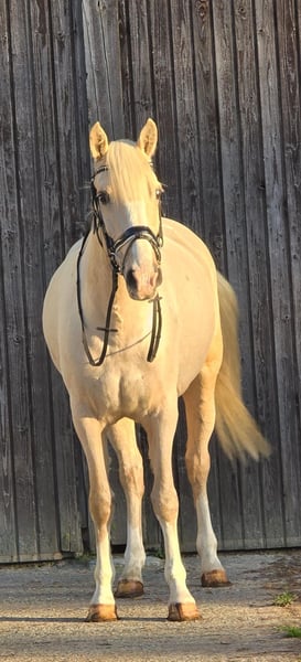 ✨💛 Wunderschöne Palomino-Stute zu verkaufen – Cherry! 💛✨ Mit großer Freude stellen wir euch unsere traumhafte Palomino-Stute Cherry vor – ein echtes Schmuckstück mit goldenem Fell und goldenem Charakter 🌟. 🌸 Geboren: 2017 📏 Stockmaß: 1,54 m 🐴 Name: Cherry Cherry ist eine elegante, harmonisch gebaute Stute, die gut abdeckt und mit ihrem bezaubernden Aussehen alle Blicke auf sich zieht ✨. Sie besitzt drei sehr schöne Grundgangarten – einen fleißigen, taktsicheren Schritt, eine ausdrucksstarke, schwungvolle Trabbewegung und eine leicht zu sitzende, runde Galoppade 💃. Cherry ist ein absolutes Verlasspferd, das sich sowohl für Einsteiger als auch für fortgeschrittene Reiter bestens eignet 🤩. Sie ist im täglichen Umgang stets brav, freundlich und unkompliziert. Beim Reiten zeigt sie sich motiviert, arbeitswillig und immer bemüht, ihrem Reiter zu gefallen ❤️. 🏆 Auf Turnieren hat Cherry schon mehrfach ihr Talent unter Beweis gestellt – sie war bis zur Klasse L2 Dressur erfolgreich und hat dabei immer eine Schleife mit nach Hause gebracht 🎀. Eine echte Schleifensammler, die mit ihre Charme und ihre Konstanz überzeugt! 🌳 Auch im Gelände ist Cherry ein echter Schatz: Sie geht sowohl alleine als auch in der Gruppe entspannt ins Gelände, ist verkehrssicher und genießt jeden Ausritt mit Ruhe und Gelassenheit ☀️🍀. 💉 Gesundheitlich ist sie top in Schuss – Cherry hat sehr gute Röntgenbilder ohne Befund ✅ und ist klinisch sowie röntgenologisch einwandfrei. 🚛 Transport ist möglich, sowohl innerhalb Deutschlands als auch ins Ausland. 📞 Für mehr Informationen oder einen Besichtigungstermin: +31 6 15117573 💫 Cherry ist ein Pferd, das man einfach lieben muss – wunderschön, ehrlich, talentiert und mit einem Herzen aus Gold 💖. Eine wunderbare Partnerin für Sport, Freizeit und Turnier – und eine echte Schleifensammlerin! 🎀🐴✨ 💛🌟 Cherry – ein goldenes Herz in einem goldenem Herz!