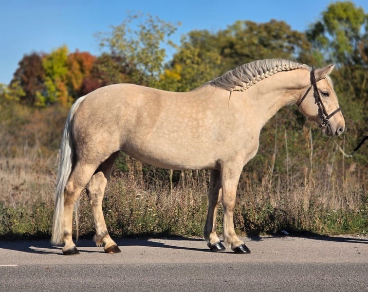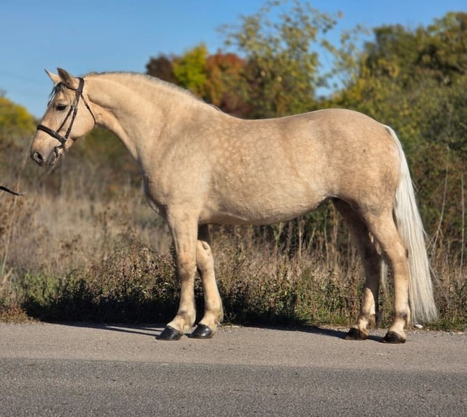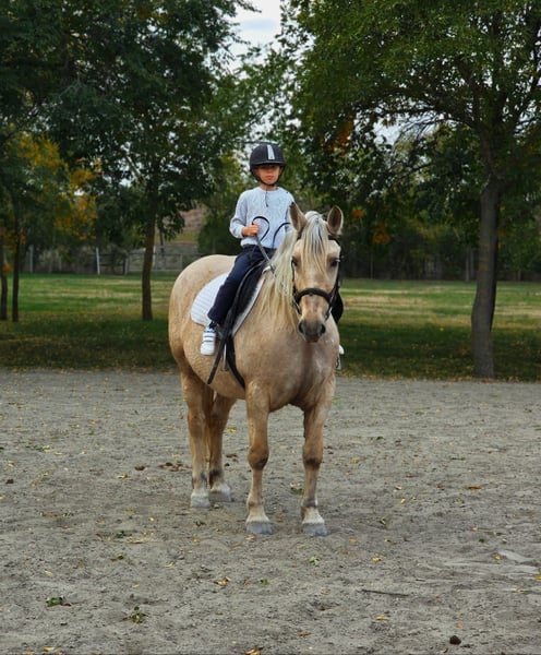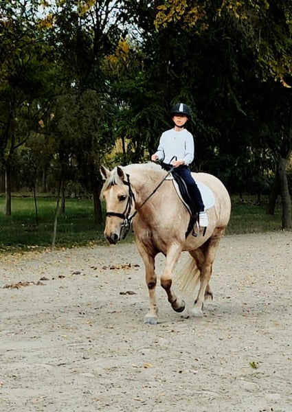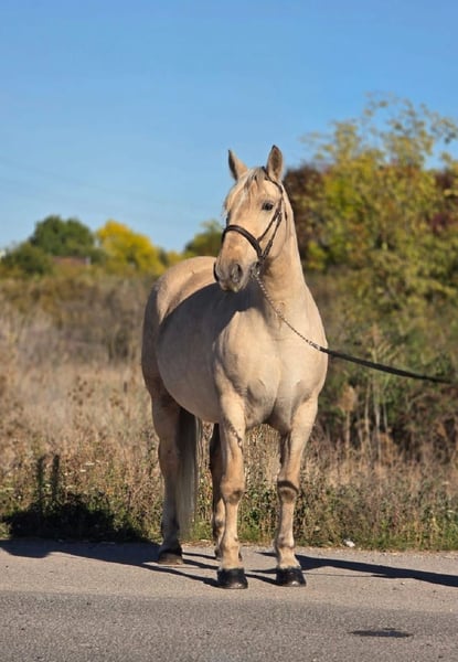 Alina – 8 Jahre alte, 155 cm große Palomino-Stute Alina ist ein wunderbares Pferd mit ausgeglichenem Wesen, das sofort durch ihre schöne Palomino-Farbe und ihr freundliches, strahlendes Auftreten auffällt. Im Alltag ist sie sehr kooperativ: Sie bleibt ruhig beim Pflegen, lässt sich problemlos führen und verladen. Unter dem Sattel zeigt Alina sich aufmerksam und motiviert. Sie reagiert gut auf die Hilfen des Reiters und vermittelt ein angenehmes Reitgefühl. Sie verfügt über drei saubere, schwungvolle Grundgangarten, die abwechslungsreiches Reiten ermöglichen – sei es in der Freizeit, im Reitunterricht oder auch für Kinder. Sie arbeitet konzentriert, nimmt Herausforderungen gerne an und bleibt dabei stets unkompliziert und gut händelbar. Im Gelände bewegt sich Alina sicher, egal ob alleine oder in der Gruppe, und bleibt dabei ruhig, aber aufmerksam auf die Signale des Reiters. Durch ihr freundliches und ausgeglichenes Wesen ist sie auch für Anfänger, junge Reiter und Kinder bestens geeignet. Alina passt sich schnell an neue Umgebungen und die Bedürfnisse des Reiters an und ist vielseitig einsetzbar – als Freizeitpferd, Familienpferd, für Kinderreitunterricht oder für leichtere Arbeit. Alles in allem ist Alina ein zuverlässiger, liebevoller und angenehmer Partner für jeden Reiter, der Pferde mit ruhigem Wesen und guten Fähigkeiten schätzt. videos unter: +4917640177894