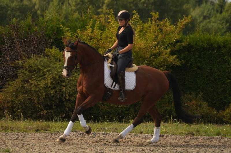 For sale: a beautiful and exceptional Wielkopolska mare. The mare is 8 years old and stands 165 cm tall, an excellent horse for sport, trained to Class N in dressage. Competing under both professionals and amateurs. Incredibly comfortable and rideable, very gentle and nice in the mouth, easy to handle and very ambitious in work, also goes out on trails. Under constant care of a farrier, veterinarian, and physiotherapist, completely healthy, vaccinated against West Nile Virus (twice). She has had one beautiful foal, easy to breed, smoothly went through pregnancy and birth. A great prospect for a future mother. In her pedigree are horses like Landos and So in Love, her brother competes in Grand Prix events. Only to a good home. I invite you to request a full video of her movement privately. The mare is located at KJ Golden Dream, Feliksów 3A, 95-015. All information: 724 493 150