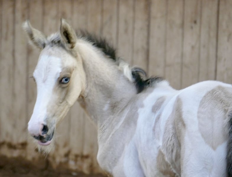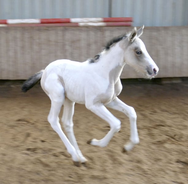 Ice Blue A – ein echter Eycatcher 💙✨ Dieses traumhafte Stutfohlen in edlem Buckskintobiano zieht alle Blicke auf sich. Mit ihrer außergewöhnlichen Farbe, ihrem korrekten Exterieur und ihrem sportlichen Auftreten begeistert sie auf ganzer Linie. Abstammend von Insider x Michelangelo bringt Ice Blue A nicht nur Schönheit, sondern auch jede Menge Qualität für den Sport mit. Ihre Linien machen sie hochinteressant für Springen und Vielseitigkeit – hier wächst etwas ganz Besonderes heran. Ein Fohlen mit Ausstrahlung, Bewegung und Perspektive – einfach zum Verlieben 💖