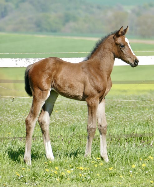 Chubella Coco Belle A – von Chubakko x Ismo Chubella Coco Belle A ist ein außergewöhnliches Stutfohlen, das mit Eleganz, Ausstrahlung und beeindruckender Bewegungsqualität sofort ins Auge fällt. Sie vereint Charme, Athletik und ein enormes Bewegungspotenzial – Eigenschaften, die sie sowohl für den Springsport als auch für Vielseitigkeit besonders interessant machen. Ihr Vater Chubakko (Connor x Colman x Contender) vereint Springtalent, Elastizität und exzellente Zuchtwerte in idealer Weise. Seine Nachkommen zeigen früh Präsenz, Aufmerksamkeit und Lernbereitschaft – ideale Voraussetzungen für ambitionierte Reiter, die ein Nachwuchspferd mit Perspektive suchen. Die Mutter Ira (Ismo x Amour x Aarstein) bringt mit Ismo eine herausragende Springanlage, kombiniert mit Vielseitigkeit, Intelligenz und Leistungsbereitschaft, während Amour und Aarstein zusätzlich Springvermögen, Charme, Rittigkeit und korrektes Fundament vererben. So entsteht bei Chubella Coco Belle A eine ideale Mischung aus Springtalent, Sportlichkeit und Charakterstärke. Chubella Coco Belle A ist ein vielversprechendes Fohlen, das sowohl Züchter als auch Sportreiter begeistert – ein Nachwuchspferd mit Perspektive für ambitionierte Karrieren im Spring- und Vielseitigkeitssport.