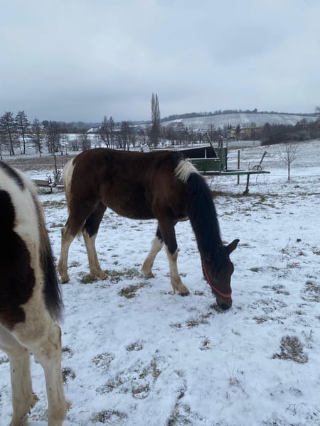 Ich verkaufe hier meinen 8 Monaten alten Hengst geb. am 29.03.25 Dakota hat ein unerschrockener und neugierigen Charakter er meistert das Fohlen abc kennt hufschmied Autos hunde und alleine spazieren gehen Er hat einen aktuellen stockmaß von 1,40 leider sind die rassen der Eltern unbekannt (Vater schecke Stockmaß 160 Mutter 155) und er lebt bei uns in einem offenstell bei weiteren Fragen gerne unter 017675823008