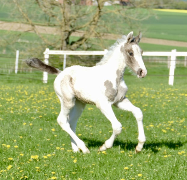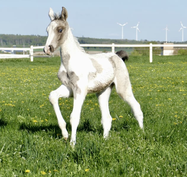 Ikelos A , benannt nach dem griechischen Gott der Träume. Ein super ausgefallenes Hengstfohlen in buckskingescheckt von Insider x Magic Memphis x Rebel Z III. Für Springen und Vielseitigkeit! D-34434 Borgentreich
