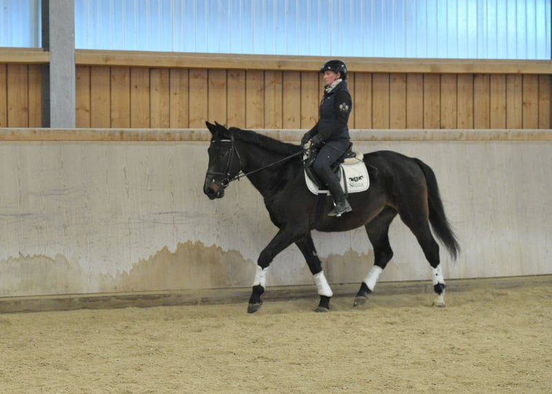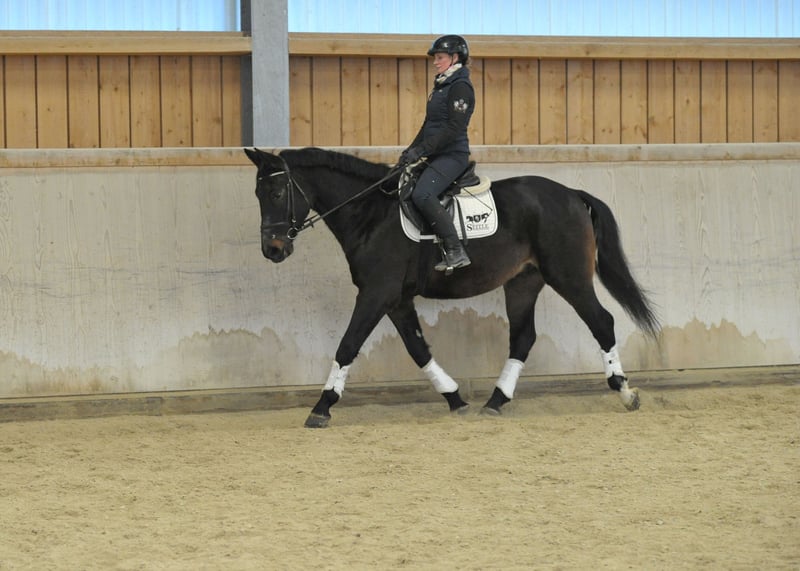 Duplo ist ein sympathischer, ansprechender dunkelbrauner Wallach mit 3 netten GGA. Er hat einen super Charakter, ob alleine oder zu mehreren im Gelände. Er kennt Halle und Platz und auch schon kleinen Sprung unter dem Sattel. Er ist ein toller Allrounder für den vielseitigen Anspruch.