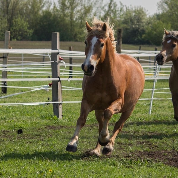 Löwenherz est un hongre de 11 ans, de race Haflinger et de trait nordique (né en 2014, taille : 1,63 m). Je l'ai acheté à ses 5 ans en tant que poulain brut, directement chez son éleveur. Sa mère est une jument de trait russe, son père un Haflinger. Löwi est joueur, curieux, actif et un vrai compagnon. Il aime se chamailler avec d’autres hongres, à tel point qu’il laisse même sa ration de foin de côté pour ça. Il est très ouvert envers les humains, car il n’a pas vécu de mauvaises expériences. Je le propose en tant que cheval monté. Il connaît la selle et le cavalier dans toutes les trois allures, aussi bien en manège qu’en extérieur. Il a un excellent mouvement, surtout au trot, et est très souple à la selle. Malheureusement, il manque d’expérience, car Löwi n’a été monté que très rarement. Il est donc complètement vierge de toute fatigue. Il répond très bien aux aides, mais aime discuter et devient parfois hésitant ou tête en l’air s’il sent que son partenaire ne prend pas la direction. Par conséquent, Löwi n’est PAS un cheval pour débutants ou enfants. Il est cependant assez facile à impressionner ou à remettre en place, et n’est pas méchant. Dans le groupe, il occupe une position moyenne, mais il peut sauter sur des juments fougueuses. Il serait donc préférable qu’il soit intégré dans un troupeau de hongres. Cependant, il a déjà vécu sans problème dans des groupes mixtes, car il n’est pas intéressé par toutes les juments. Löwi n’a connu que le paddock en liberté, avec beaucoup d’espace. La stabulation ou les petits paddocks ne lui conviennent pas. En hiver, il reçoit du foin 24h/24, en été, il pâture en permanence. Il supporte bien cela, à condition que les soins aux sabots et l’espace soient adaptés. Il est en bonne santé, et ses dents sont vérifiées chaque année. Pas de revendeur ni d’écurie commerciale. Prix ferme : 2 500 €