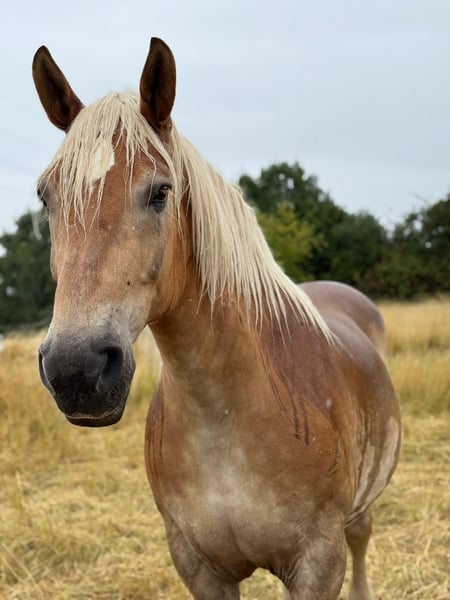 Kaltblut Wallach Hanniball sucht sein passendes Zuhause Schweren Herzens habe ich mich dazu entschlossen, für meinen 16-jährigen Kaltblut-Wallach Hanniball ein neues, passendes Zuhause zu suchen. Hanniball ist ca. 1,70 m groß und ein beeindruckender, kräftiger Wallach. Leider kommt er bei uns mit den häufig wechselnden Reitern nicht gut zurecht. Daher wünsche ich mir für ihn einen festen, zuverlässigen Menschen, der ihm Sicherheit und Konstanz gibt. Laut Vorbesitzer wurde er gefahren, wir selbst haben dies jedoch nicht ausprobiert. Er steht aktuell im Offenstall in einer gemischten Herde mit 24/7 Heu zur Verfügung und im Sommer zusätzlichem Weidegang. Diese Haltungsform kennt und schätzt er sehr, daher wünsche ich mir auch für sein neues Zuhause eine Offenstallhaltung. Bei ernsthaftem Interesse freue ich mich über eine persönliche Nachricht, um alles Weitere zu besprechen. 0173 2593461