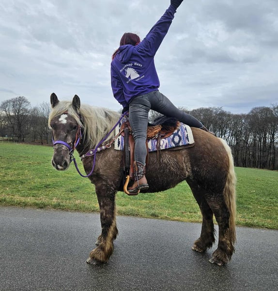 Baroque Coloured Chestnut Mare – Calm, People-Oriented MELODY Age: 4 years Height: approximately 16.1 hh Price: €6,900 Health Certificate: available ✨ Description: This lovely baroque chestnut mare impresses with her gentle, calm, and very people-oriented nature. She seeks contact with humans and is well-behaved, friendly, and straightforward in daily handling. Under saddle, she is already very well-behaved and pleasant to ride for her young age. She cooperates willingly, is attentive, and provides a comfortable riding experience. Due to her age, she still needs further development, but she has excellent potential and a positive attitude. She is open to new experiences, motivated, and willing to do everything – an excellent foundation for a future leisure horse with which one can grow together and enjoy many wonderful hours. Ideal for: Leisure riders or ambitious riders seeking a young, friendly, and well-behaved mare with potential, who enjoy ongoing training. Our horses are regularly: – dewormed – attended to by the farrier – osteopathically checked Transport can be arranged affordably upon request. Our services include: ✅ 3-month exchange guarantee ✅ Trial ride: €35, each additional horse €25 (credited on the same day if purchased) ✅ €100 immediate discount for pickup/transport on the same day ✅ Personal and honest advice Please contact us exclusively by phone: 0171 – 4001968 Available daily from 8 a.m. to 8 p.m. ⚠️ No emails or WhatsApp messages ⚠️ All information without guarantee