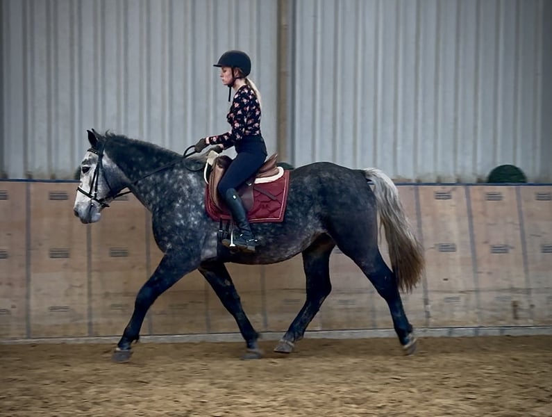 Name: Paul Breed: Coldblood Cross Gender: Gelding Date of Birth: January 11, 2021 Age: 4 years Height: 15.5 hh Color: Blue Roan Pedigree: Unknown Character: Friendly and people-oriented, eager to learn, attentive, intelligent, brave Training/Suitability:ridden, leisure riding Trail Experience: fearless, steady nerves, comfortable riding alone or in groups Health: dewormed, vaccinated, barefoot, eczema-free, teeth checked, osteopathically treated Stabling: box stall, open stable Special Features: farrier and loading-friendly, suitable for trail riding, endurance riding horse The listed qualities are based on our personal assessment and do not constitute guaranteed traits. Price: €6,500 (gross price) Have we piqued your interest? To give you a better impression of Paul, we are happy to send you his riding video. Of course, we are also available for a detailed description of the horse, personal consultation, and to answer any questions you may have via phone. Please feel free to send us a WhatsApp message at any time or call us at: +49 151 19487595 Our calling hours are daily from 7:00 AM to 1:30 PM and again from 8:00 PM. We look forward to hearing from you! A clinical or radiological pre-purchase examination can be arranged with your veterinarian. Paul can be delivered safely and comfortably to his new home. We take care of all preparations and transportation so that your new horse arrives stress-free, well cared for, insured, and in good health. Currently, we offer a carefully selected range of horses for sale. With us, you are sure to find your dream horse. Feel free to visit our website at: www.marvinsroyalhorses.de Dear customers, we are happy to introduce you to our horses and offer grooming, tacking, lunging, groundwork, and trial riding in the riding hall, on the arena, or in the field, so you can get to know your new family member better. This service costs €40 per horse, with each additional horse €30, and will be refunded upon purchase. Our address: Ferdinand Street 50 53577 Neustadt-Wied Google Maps: marvinsroyalhorses
