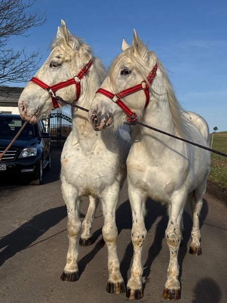 ANFRAGEN AUSSCHLIESSLICH TELEFONISCH 📞 +49 175 1679777 Zum Verkauf steht ein absolut liebes, unkompliziertes Zweischimmelgespann, bestehend aus zwei 6-jährigen Schimmel-Wallachen. !!SCHAUEN SIE SICH UNBEDINGT IHR VIDEO AN!!! Beide Wallache überzeugen durch ihren ausgeglichenen Charakter sowie ihre ruhige, angenehme Art im Umgang. Sie sind zuverlässig zweispännig gefahren und zeigen sich dabei sehr brav, ehrlich und nervenstark. Auch im Verkehr präsentieren sie sich gelassen und unkompliziert. Zusätzlich sind beide Wallache geritten und auch hierbei brav und zuverlässig. Sowohl beim Fahren als auch beim Reiten machen sie täglich Freude. Im täglichen Handling sind sie sehr unkompliziert: brav beim Putzen, Anspannen, Führen und im allgemeinen Umgang. Beide sind lernwillig, kooperativ und menschenbezogen. Ein tolles, sofort einsatzbereites Kutschgespann für Freizeit, Ausfahrten oder den ambitionierten Fahrsport – ideal für alle, die ein ehrliches, liebes und verlässliches Gespann suchen. Besichtigung und Probefahren nach Terminvereinbarung in 53947 Nettersheim möglich. Um „Fahrtourismus“ zu vermeiden, berechnen wir für das Probefahren 40,00 €, die beim Kauf selbstverständlich angerechnet werden.