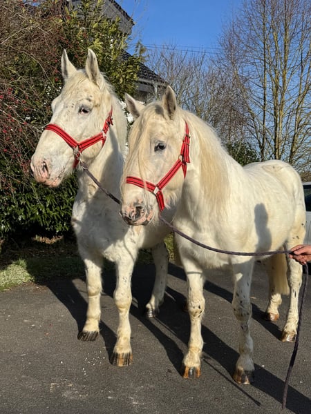 Enkel telefonisch bereikbaar voor vragen 📞 +31 6 15 79 77 77 Te koop staat een bijzonder lief en makkelijk twee-span, bestaande uit twee 6-jarige schimmelhengsten. !! BEKIJK ABSOLUUT DE VIDEO!! Beide hengsten overtuigen door hun evenwichtige karakter en hun rustige, vriendelijke omgang. Ze zijn betrouwbaar in het dubbele span gereden en tonen zich daarbij zeer braaf, eerlijk en zenuwsterk. Ook in het verkeer blijven ze kalm en makkelijk in de omgang. Daarnaast zijn beide hengsten bereden en ook hierbij braaf en betrouwbaar. Zowel onder het rijden als onder het rijden maken ze dagelijks plezier. In het dagelijkse hanteren zijn ze zeer gemakkelijk: braaf bij het poetsen, aanspannen, leiden en in de omgang. Beide zijn leergierig, coöperatief en mensgericht. Een geweldig, direct inzetbaar koetsenpaard voor recreatie, uitritten of de ambitieuze mennersport – ideaal voor iedereen die op zoek is naar een eerlijk, lief en betrouwbaar span. Bezichtiging en proefritten mogelijk na afspraak in 53947 Nettersheim. Om „fietstourisme“ te voorkomen, rekenen wij €40 voor een proefrit, wat uiteraard wordt verrekend bij aankoop.