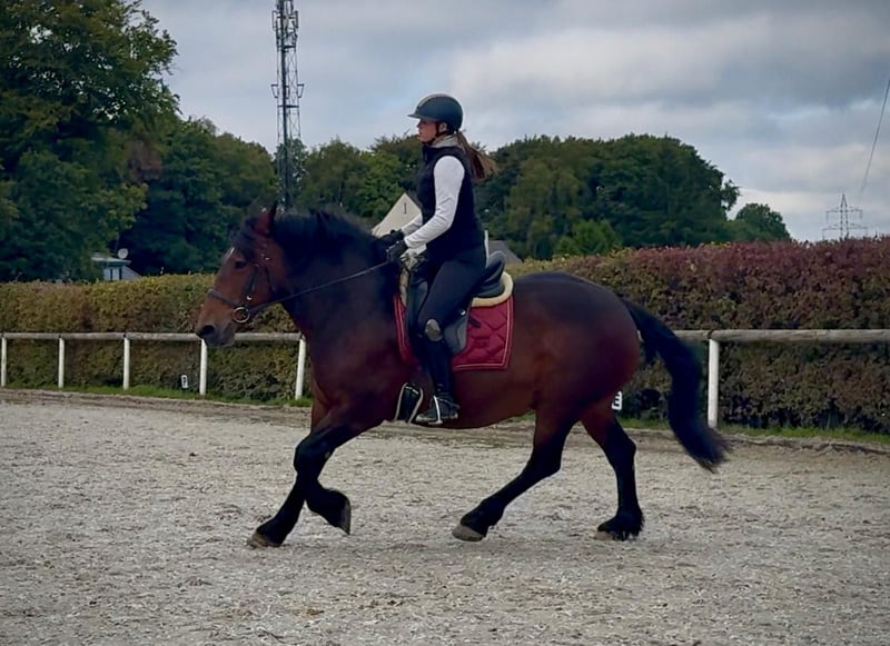 Name: Lea Breed: Coldblood Cross Gender: Mare Date of Birth: May 29, 2013 Age: 10 years Height: 16.1 hh Color: Dark Brown Pedigree: Unknown Character: People-oriented, patient, curious, intelligent, brave Training/ suitability: ridden, leisure riding, dressage, trail riding Terrain experience: confident, fearless, resilient, suitable for solo and group rides Health: dewormed, vaccinated, barefoot, eczema-free, teeth checked, osteopathically treated Stable: box stall, open stable Special features: farrier and loading friendly, herd-compatible, trail riding horse, weight carrier The above traits are based on our personal assessment and do not constitute guaranteed characteristics. Price: €5,900 (gross price) Have we sparked your interest? To give you a better impression of Lea, we are happy to send you her riding video. Of course, we are available for a detailed description of the horse, personal consultation, and to answer all your questions by phone. Please feel free to contact us anytime via WhatsApp or call us at: +49 151 19487595 Our calling hours are daily from 7:00 AM to 1:30 PM and from 8:00 PM onwards. We look forward to hearing from you! A clinical or radiological purchase examination can be arranged with your veterinarian. Lea can be delivered safely and comfortably to her new home. We handle all preparations and transportation to ensure your new horse arrives stress-free, well cared for, insured, and in good health. Currently, we offer a carefully selected variety of horses for sale. With us, you are sure to find your dream horse. Feel free to visit our website at: www.marvinsroyalhorses.de. Dear customers, we are happy to introduce you to our horses and offer grooming, tacking, lunging, ground work, as well as trial riding in the riding hall, on the arena, or in the field, so you can get to know your new family member better. This costs €40 per horse, with each additional horse €30, and will be refunded upon purchase. Our address: Ferdinand Grube 50 53577 Neustadt-Wied Google Maps: marvinsroyalhorses