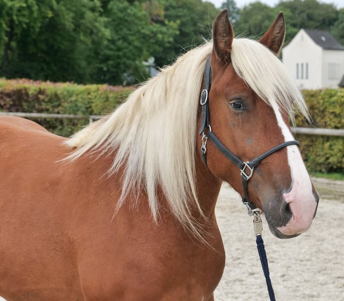 Name: Mirabell Breed: Coldblood (Trait Comtois) Gender: Mare Date of Birth: April 18, 2022 Age: 3 years Height: 1.60 m (approx. 16.1 hh) Color: Light Brown Pedigree: Available Temperament: Friendly and people-oriented, courageous, patient, curious, intelligent, brave, eager to learn Training/ suitability: ridden, leisure riding, dressage, trail riding, cross-country horse Cross-country experience: fearless, attentive, steady nerves, confident both alone and in a group Health: dewormed, vaccinated, barefoot, eczema-free, teeth checked, osteopathically treated Stabling: box stall, open stable Special features: farrier and loading-friendly, herd-compatible, trail riding horse, weight carrier Please note that the above characteristics are based on our personal assessment and do not constitute guaranteed traits. Price: €6,900 (gross price) Have we piqued your interest? To give you a better impression of Mirabell, we are happy to send you a riding video. Of course, we are available for a detailed description of the horse, personal consultation, and to answer all your questions by phone. Feel free to contact us anytime via WhatsApp or call us at: +49 151 19487595 Our phone hours are daily from 7:00 AM to 1:30 PM and again from 8:00 PM onwards. We look forward to hearing from you! A clinical or radiological pre-purchase examination can be arranged with your veterinarian. Mirabell can be safely and comfortably delivered to your new home. We handle all preparations and transportation to ensure your new horse arrives stress-free, well cared for, insured, and in good health. Currently, we offer a carefully selected range of horses for sale. With us, you are sure to find your dream horse. Visit us also on our website: www.marvinsroyalhorses.de. Dear customers, we would be happy to introduce you to our horses and offer grooming, tacking, lunging, ground work, and trial riding sessions in the riding hall, on the arena, or in the field to help you get to know your new family member better. This costs €40 per horse, with each additional horse €30, and will be refunded upon purchase. Our address: Ferdinand Grube 50 53577 Neustadt-Wied Google Maps: marvinsroyalhorses